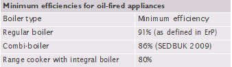 - The appliance should be at least as efficient as the minimum seasonal efficiency required for that fuel