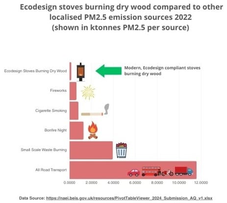 Part of the reason is the use of the term’“wood burning stoves’ – something that can be seen across many mainstream media outlets. The reason this term is problematic is because it is reductive and, while it is very effective at reinforcing a negative narrative around domestic wood burning, it fails to properly reflect the facts within the data.